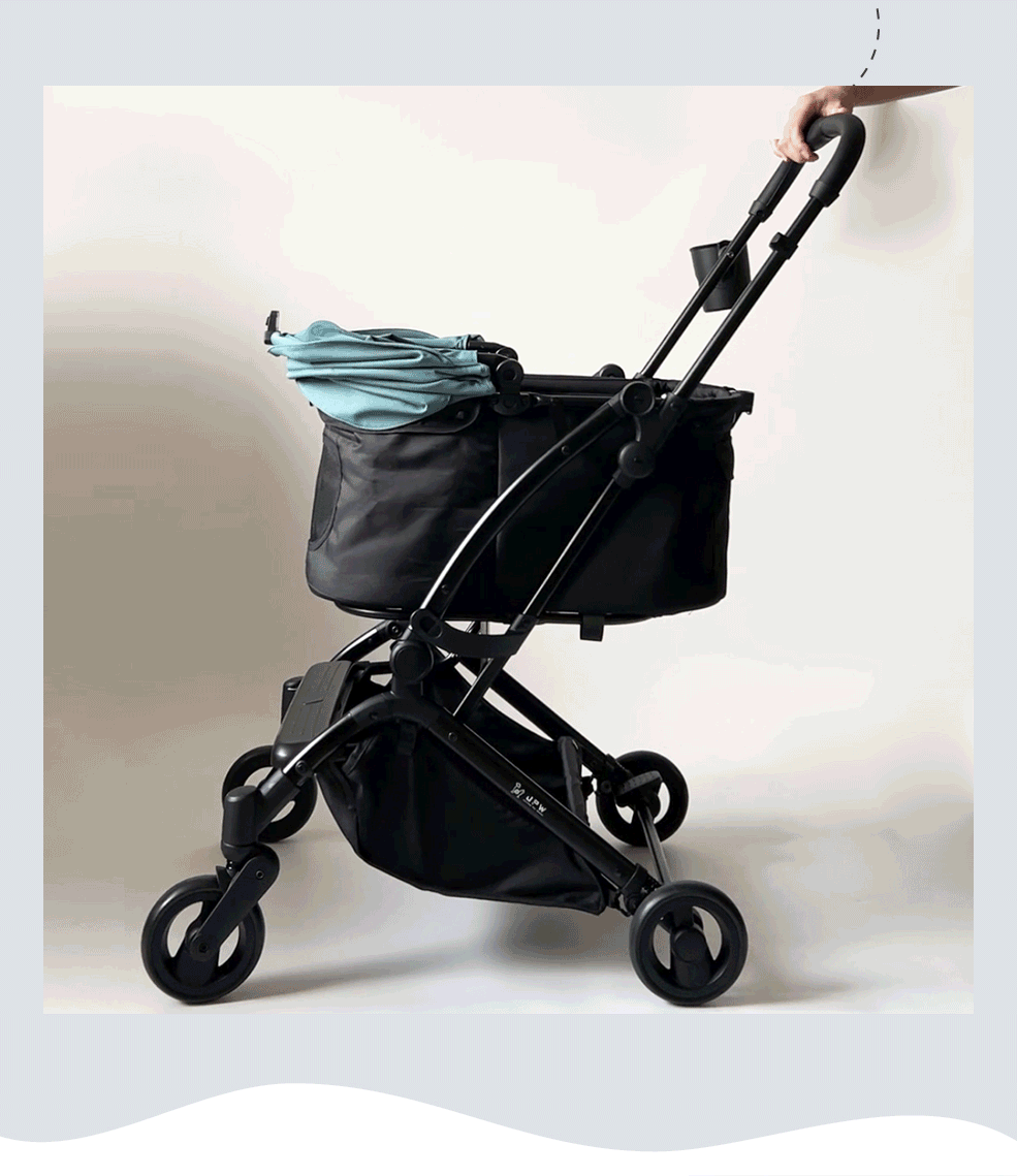 ✤ 躺式自動收折,收車時無需將下方置物籃物品先取出